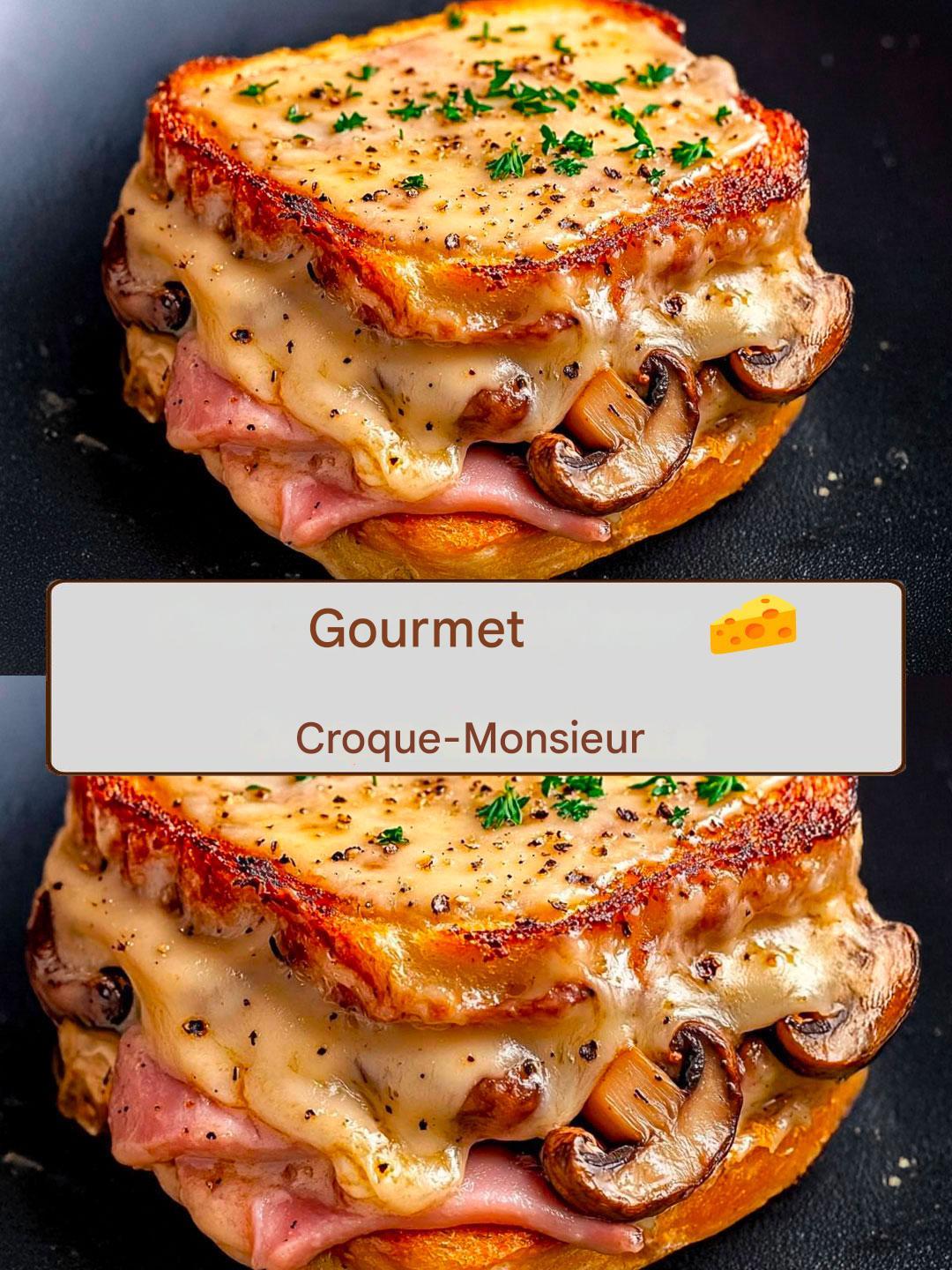 Gourmet-svampen Croque-Monsieur er et uimodståeligt twist på en berømt fransk klassiker. Denne version, der er en blanding af en velsmagende sandwich og en fyldig gratin, kombinerer sprødheden af gyldent brød med den bløde tekstur af et cremet svampefyld, der smelter i munden. Denne fusion af teksturer forvandler en simpel croque-monsieur til en sand gourmetoplevelse.