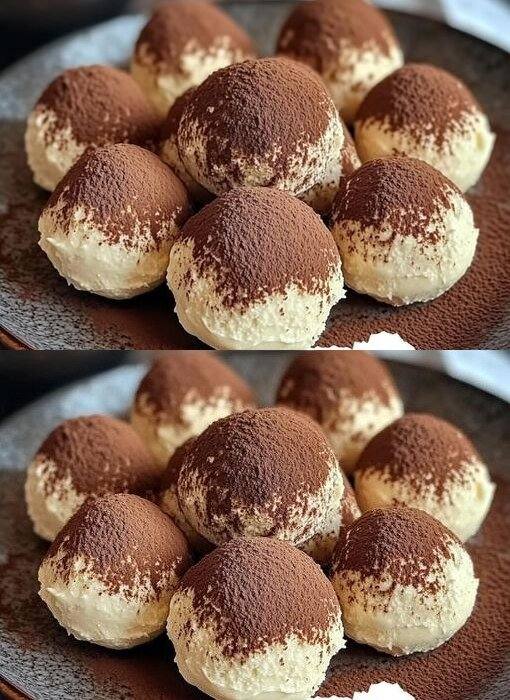 Tiramisu-kugler Ingredienser: Mine kære, hvis I kan lide opskriften, så skriv endelig en kommentar! 2 teskefulde instant espresso 120 g kiks 200 g mascarpone 15 g flormelis 1 pose vaniljesukker 2 spiseskefulde amaretto 30 g kakaopulver Tilberedning: fortsættes på næste side