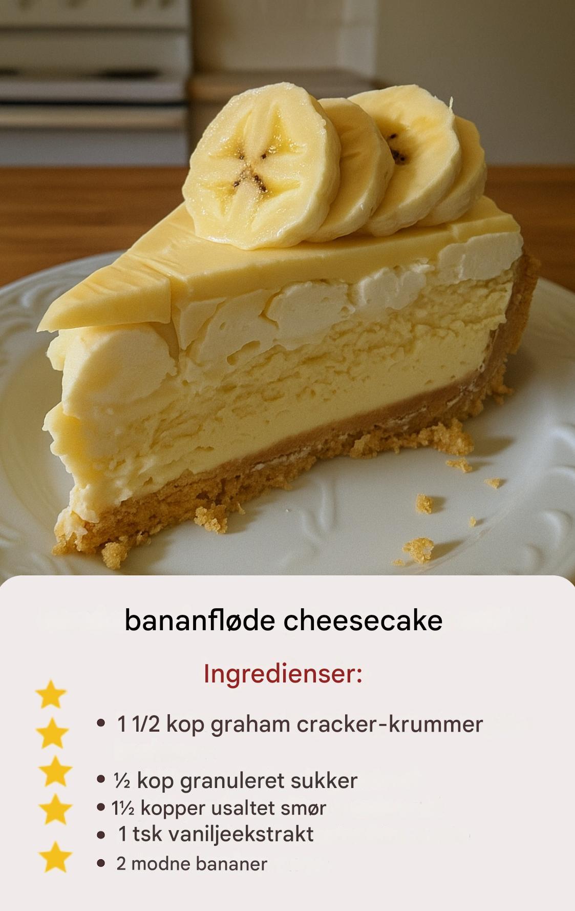 En sprød bund, et banan-ostfyld, der smelter i munden, toppet med let flødeskum og friske bananskiver 🍌