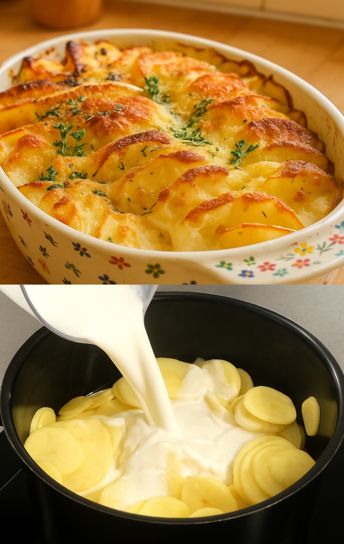 Cyril Lignacs Gratin Dauphinois er en moderne og smagfuld fortolkning af den franske klassiker fra Dauphiné-regionen. Denne ikoniske ret, lavet med smeltende møre kartofler, cremet sauce og et strejf af hvidløg, er forfinet med den berømte koks metode. Perfekt som tilbehør til stegt kød, fisk eller endda som hovedret med en salat, kombinerer denne Gratin Dauphinois-opskrift enkelhed og raffinement. Opdag, hvordan du genskaber denne fryd derhjemme ved at følge Cyril Lignacs tips!
