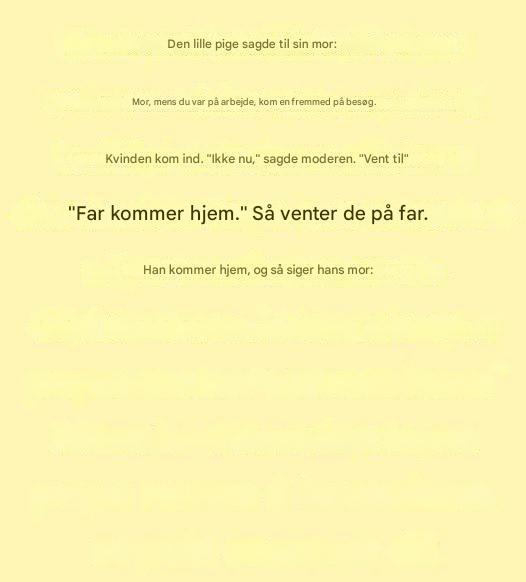 “En fremmed kvinde? Lad os se, hvornår far kommer tilbage.”
