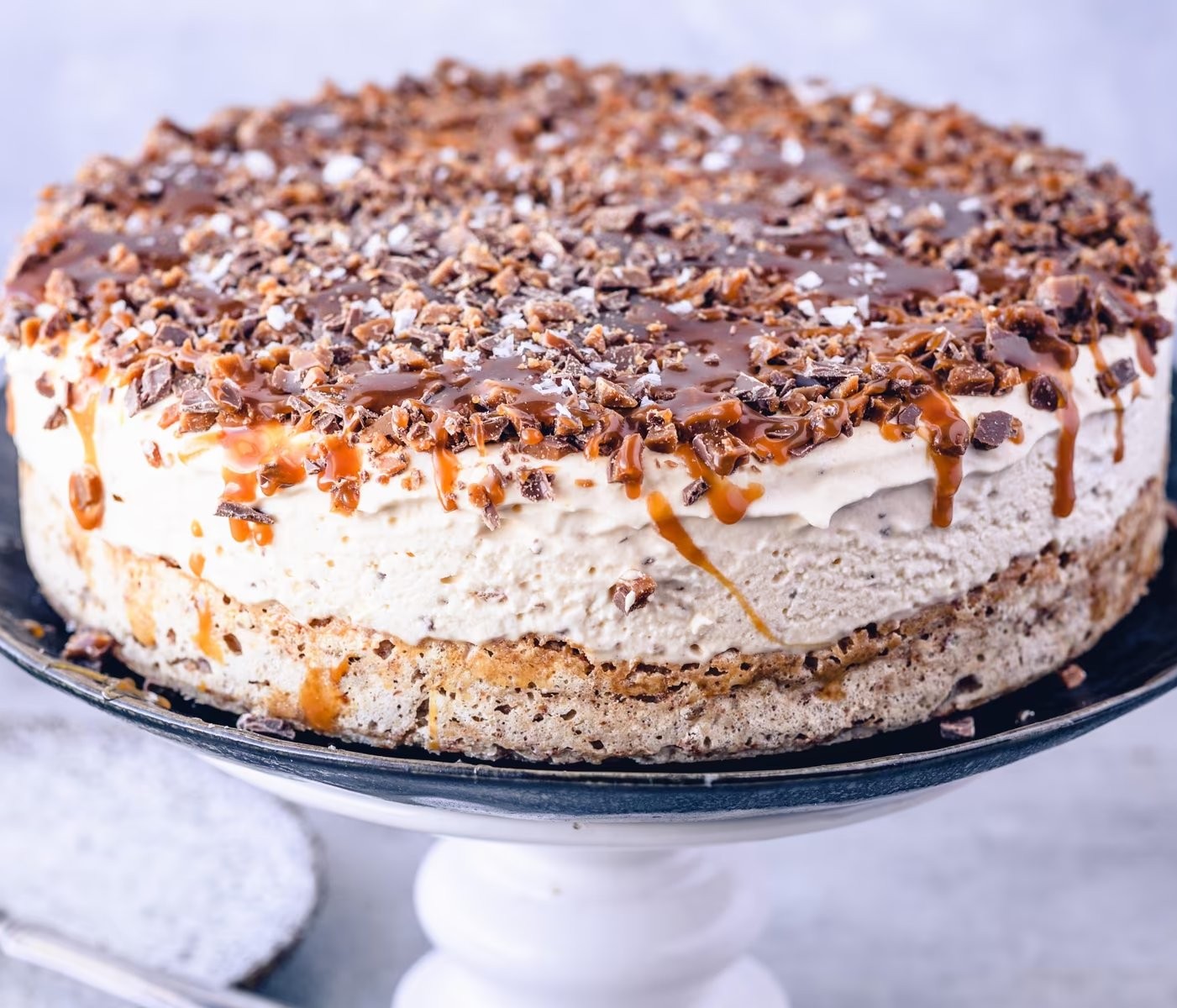 “Luftig bund, cremet fyld og sprød Daim – en uimodståelig kombination.”