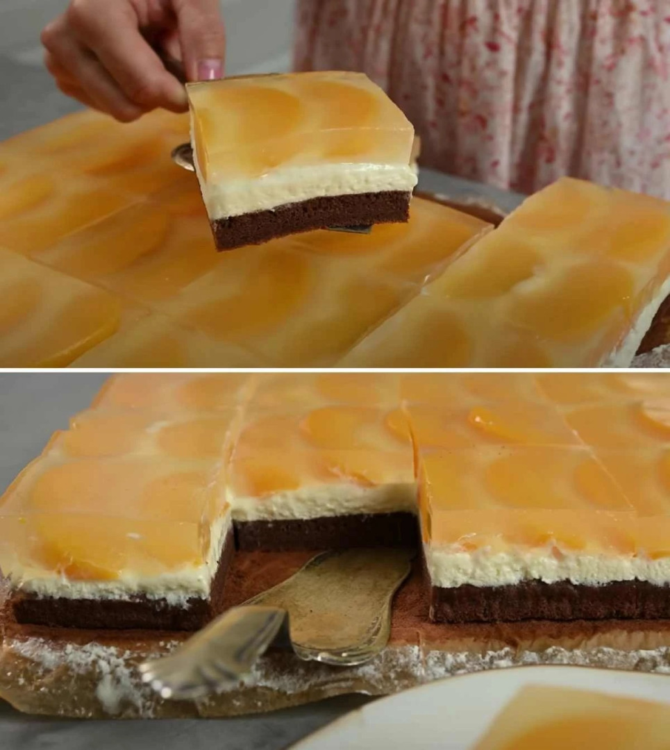 Denne ferskenkage med kakaobund, hytteostcreme og frugtgelé er et perfekt valg til et festligt bord eller en almindelig kaffepause. Den er saftig, forfriskende og lavet med ingredienser, der findes i næsten alle husstande. Opskriften er baseret på vores bedstemødres traditionelle køkken og er stadig nem at tilberede.