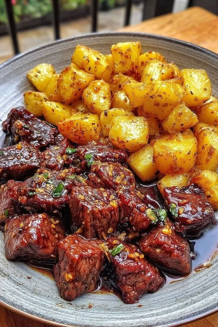 Hej kære venner! Gør jer klar til et virkelig dejligt måltid, der er sprængfyldt med smag og åh-så-mættende. Denne opskrift på honningglaseret oksekød og sprøde kartofler er designet til at være skånsom mod maven og stor på smagen, perfekt til en hyggelig middag enhver aften i ugen. Lad os komme i gang med madlavningen! **Udbytter:** 4 portioner