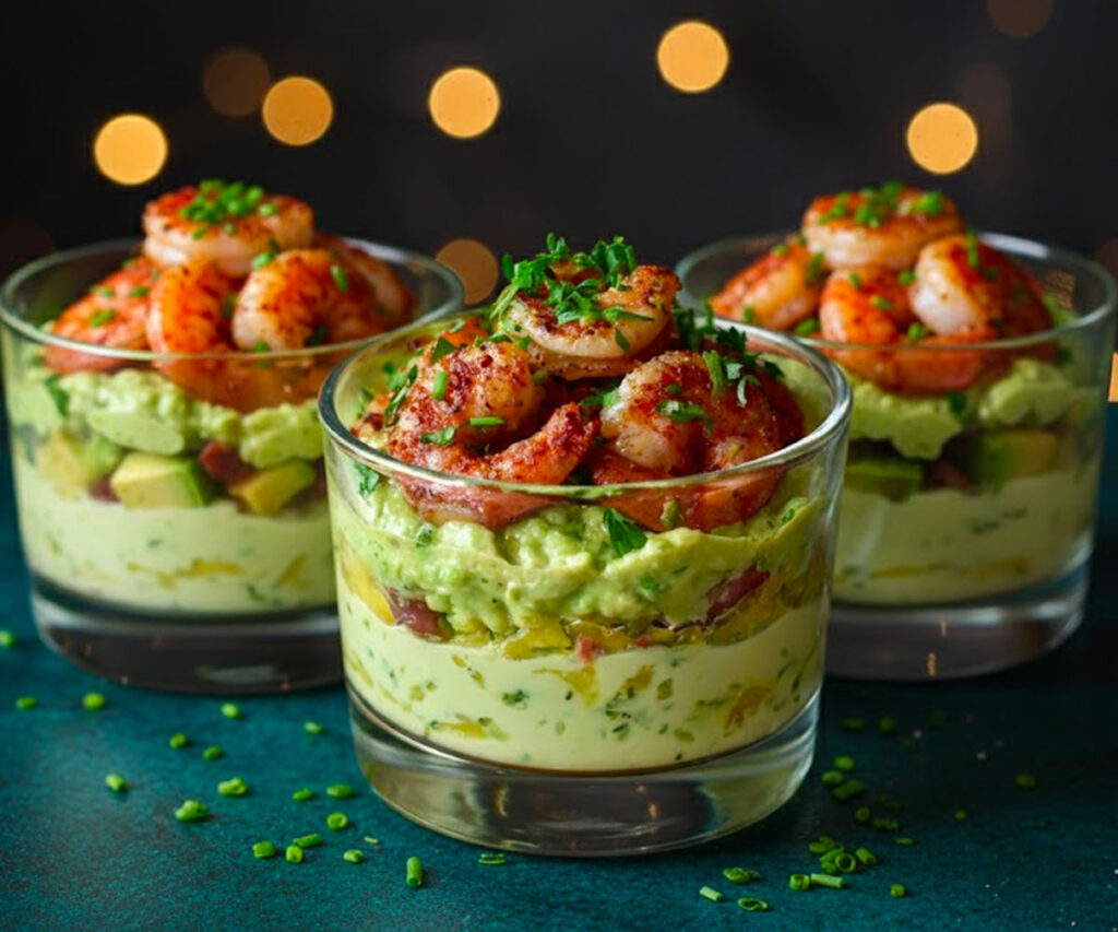 Farverige, duftende og sprængfyldte med friskhed. Disse grillede rejer med mango og citronguacamole er en sand eksplosion af smagsoplevelser. De er perfekte til særlige lejligheder såsom festlige måltider og kan nydes som forret eller som en del af en cocktailfest. Deres lagdelte præsentation i et klart glas skaber en “wow”-effekt uden behov for komplicerede teknikker.