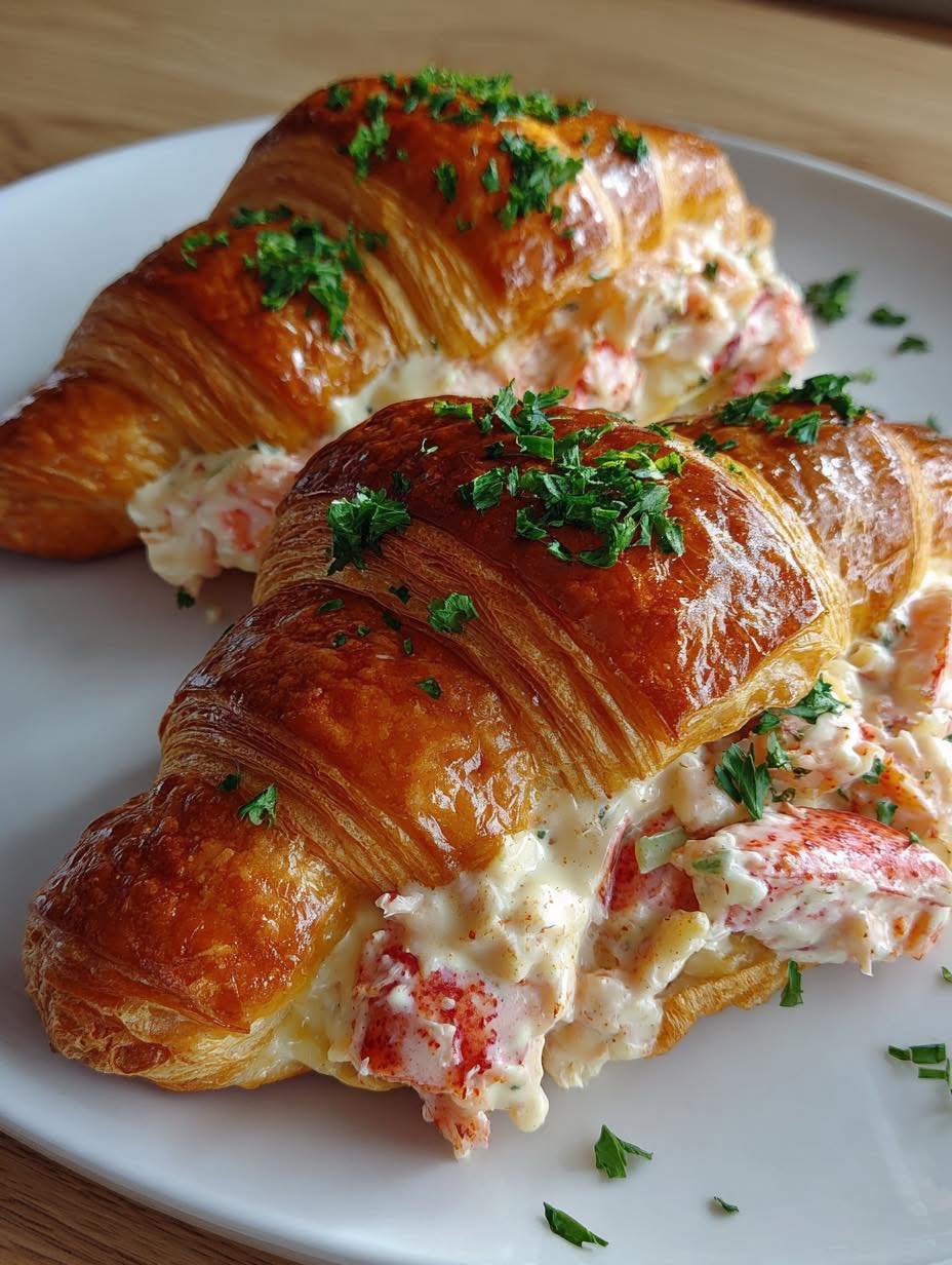 Hummercroissantruller DU SKAL BRUGE 2 store smørcroissanter, halverede 1/2 pund kogt hummerkød, hakket eller i stykker
