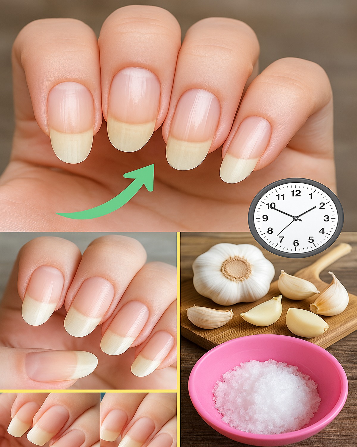 Instruktioner: Knus et økologisk fed hvidløg, påfør det på dine negle, massér det forsigtigt, lad det virke i fem minutter, og skyl derefter med vand.