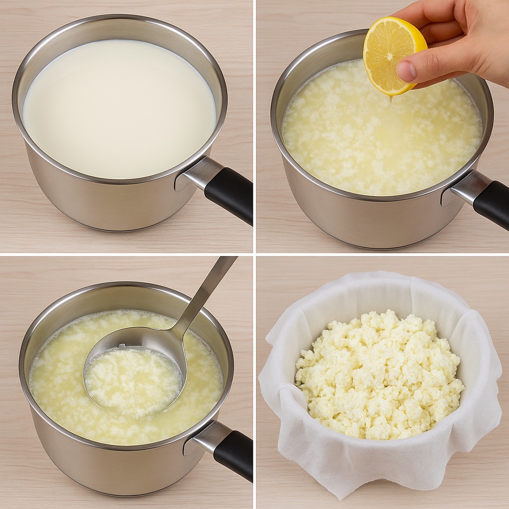 Hvordan laver man hjemmelavet ost med mælk, citron og yoghurt?