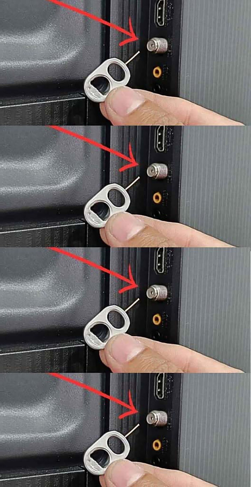 Men først og fremmest, prøv ikke at putte noget ind i dit tv ! Tricket er at lave en lille ekstern antenne, der er enkel, sikker og miljøvenlig.