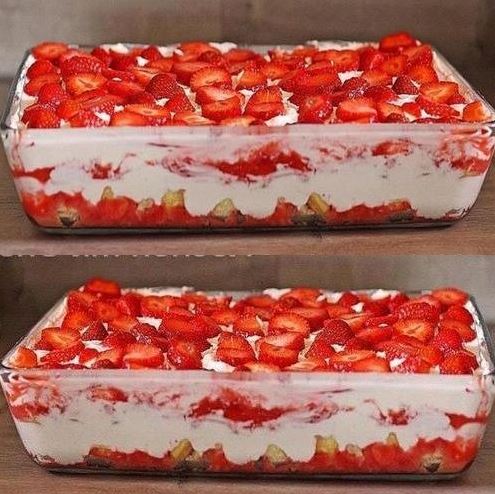 Jeg blander 1 kg jordbær med mascarpone for at lave jordbærtiramisu.