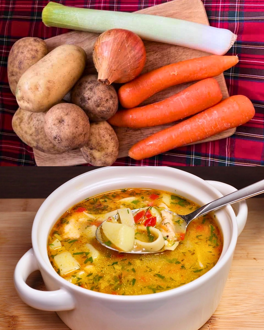 Denne solide kyllinge- og grøntsagssuppe er perfekt til et trøstende måltid året rundt. Pakket med nærende ingredienser som kyllingebryst, porrer, gulerødder, selleri og peberfrugter, er denne suppe ikke kun lækker, men også mættende. Nem at lave og fuld af smag, den vil helt sikkert blive en familiefavorit. Tilberedningstid: ca. 45 minutter