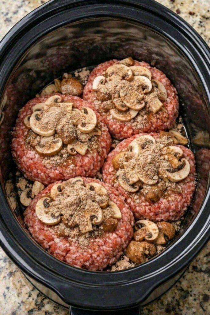 Denne slowcooker Salisbury Steak leverer al den nostalgiske smag af den klassiske diner-favorit – møre oksekødsbøffer dækket af en fyldig, smagfuld løg- og champignonsauce – men uden den nødvendige tilberedning på komfuret. Bare form, læg lag på, og lad din slowcooker gøre arbejdet, mens du går om dagen.