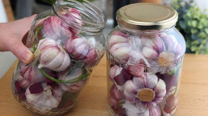 Efter tre dage fjernes den yderste skal af hvidløget.