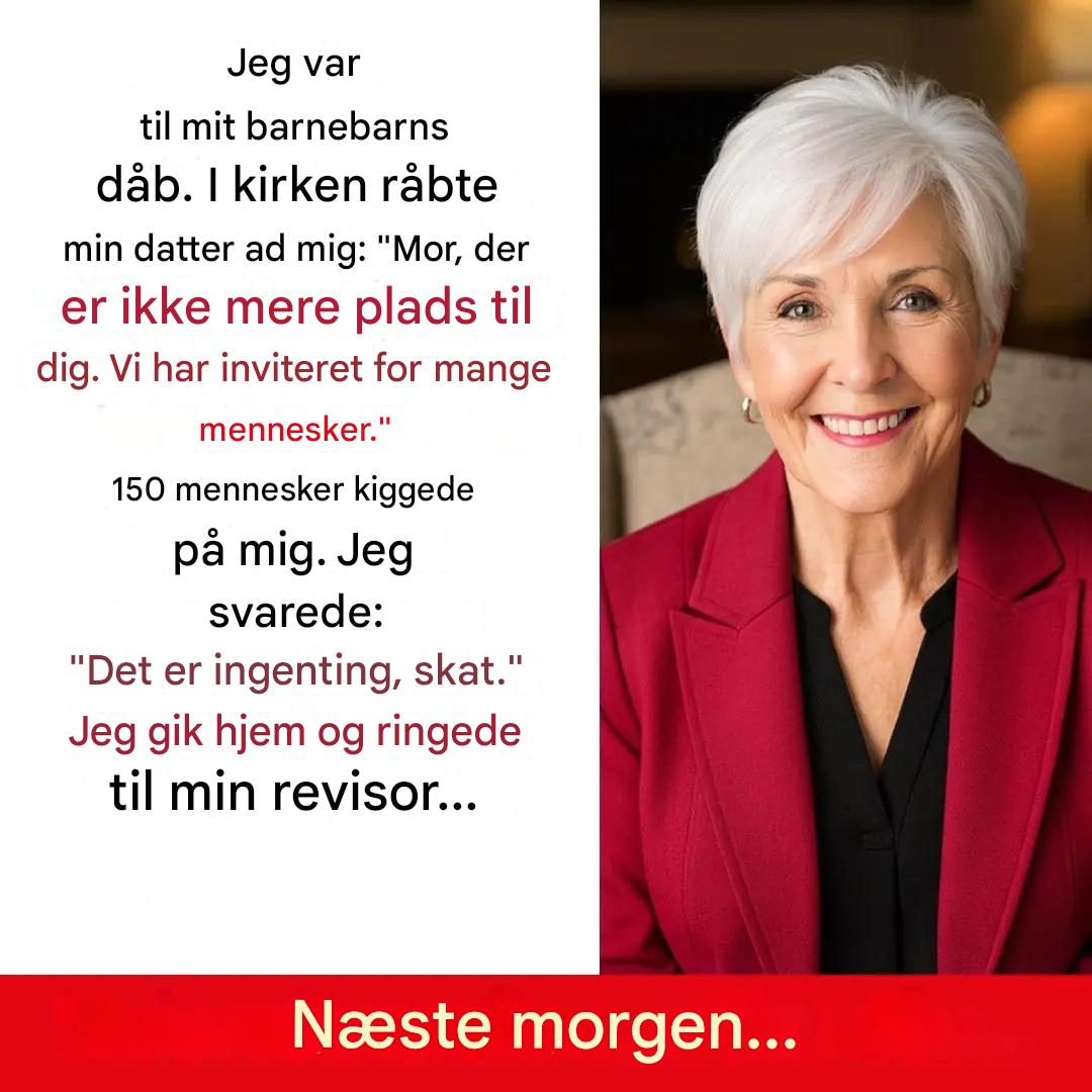 Nogle gange er et par hviskede ord på det værst tænkelige tidspunkt alt, hvad der skal til for at knuse et hjerte. Den dag havde 68-årige Claire omhyggeligt forberedt sig til sit barnebarns dåb. Hun havde organiseret alt, finansieret alt og planlagt hver eneste detalje. Alligevel råbte hendes egen datter ad hende ved indgangen til kirken: “Du hører ikke hjemme her, mor.” En sætning, der ændrede alt. En sætning, der paradoksalt nok satte hendes liv på en ny kurs.