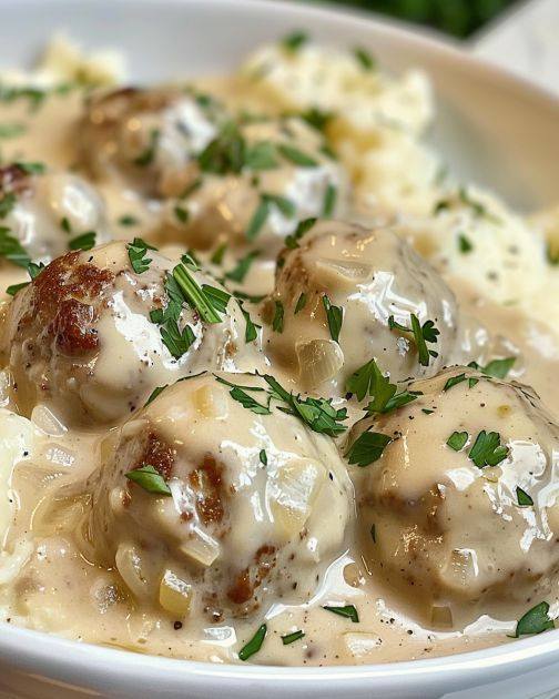 Svenske kødboller, kendt som Köttbullar, er en fast bestanddel af det svenske køkken med en rig historie, der går tilbage til begyndelsen af ​​det 18. århundrede. Disse lækre små skiver, der angiveligt blev bragt fra Tyrkiet af Kong Karl XII, er blevet en elsket ret verden over. Nu, med vores travle liv i tankerne, har jeg tilpasset denne klassiker til en mere bekvem form for den moderne kok – cremede svenske kødboller i slowcooker. Denne opskrift er perfekt til alle, der søger komforten ved et hjemmelavet måltid, der er let at lægge til side og glemme. Den er perfekt til servering på en kølig aften, eller når du har lyst til noget solidt og mættende uden besvær.