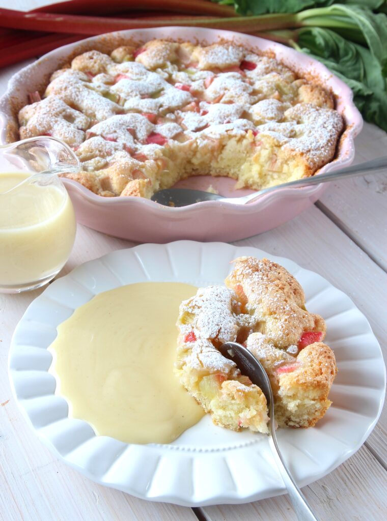 Erstat rabarberen med hindbær, blåbær, jordbær eller revet æble og kanel! En perfekt kage, der kan varieres i det uendelige!