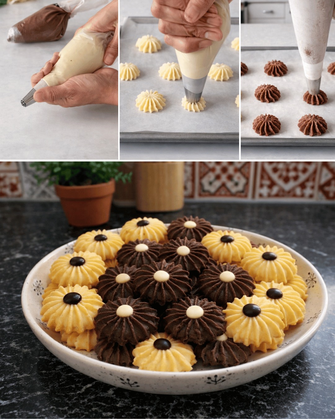 Mini tofarvede shortbread-kager: Vanilje og chokolade