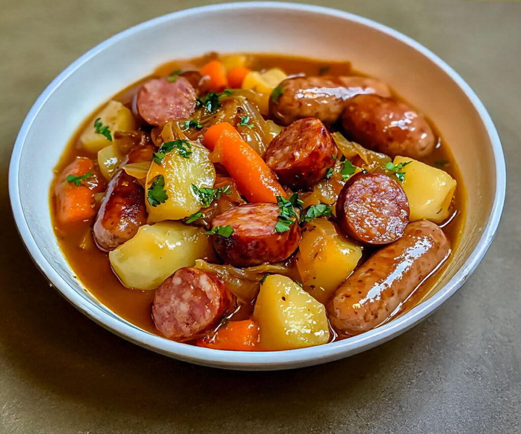 En af de mest populære variationer er gullasch med pølser og grøntsager. Her tilfører røgede pølser – Montbéliard, Morteau eller Strasbourg, afhængigt af regionen – den lette bouillon deres aroma, mens grøntsagerne, der simrer i lang tid ved svag varme, absorberer alle smagene. Det er et komplet måltid, både nærende og afbalanceret, der kombinerer proteiner, stivelse og grøntsager i én gryde.