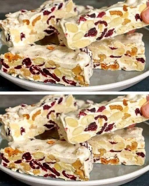 Forkæl dine sanser med denne lækre mandel-, valnødde- og tranebærnougat, en sød godbid, der smukt balancerer de rige smage af nødder og tranebærrenes syrlighed. Perfekt til enhver lejlighed, tilbyder denne nougat en unik blanding af teksturer og smagsoplevelser, der vil få dig til at hige efter mere med hver bid. Uanset om du ønsker at imponere gæster ved en sammenkomst, leder efter en særlig hjemmelavet gave eller bare forkæle dig selv med noget lækkert, vil denne nougat-opskrift helt sikkert blive et hit. Med sine enkle trin og sunde ingredienser kan du skabe en luksuriøs godbid, der ikke kun vil tilfredsstille din søde tand, men også fremvise naturens godhed. Lad os dykke ned i processen med at lave denne lækre nougat og nyde de søde belønninger på dit kulinariske eventyr!