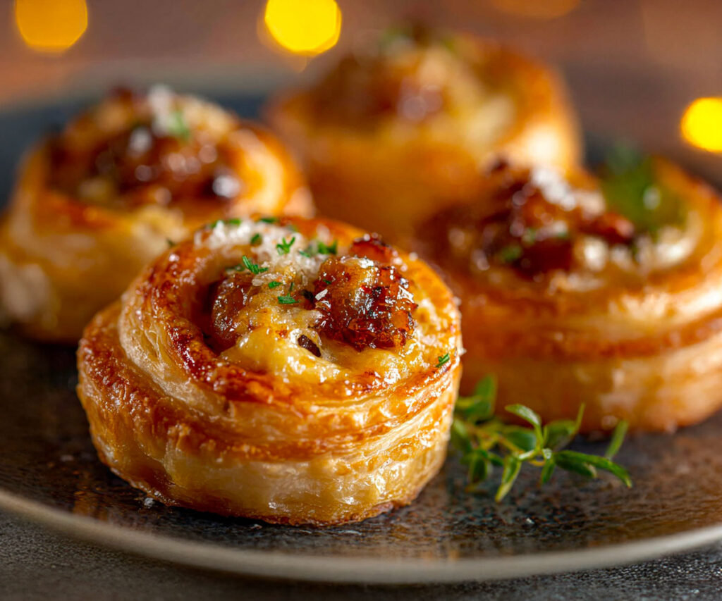Nogle gange er meget lidt nok til at skabe en wow-faktor under cocktailtimen. En gylden smørskorpe, et strejf af smeltet ost, et strejf af sødt konfiteret løg … og voilà, sprøde godbidder, der er klar til at forføre dine gæster fra første bid. Elegante, enkle og velsmagende, disse små vidundere er den perfekte balance mellem nydelse og sofistikering.