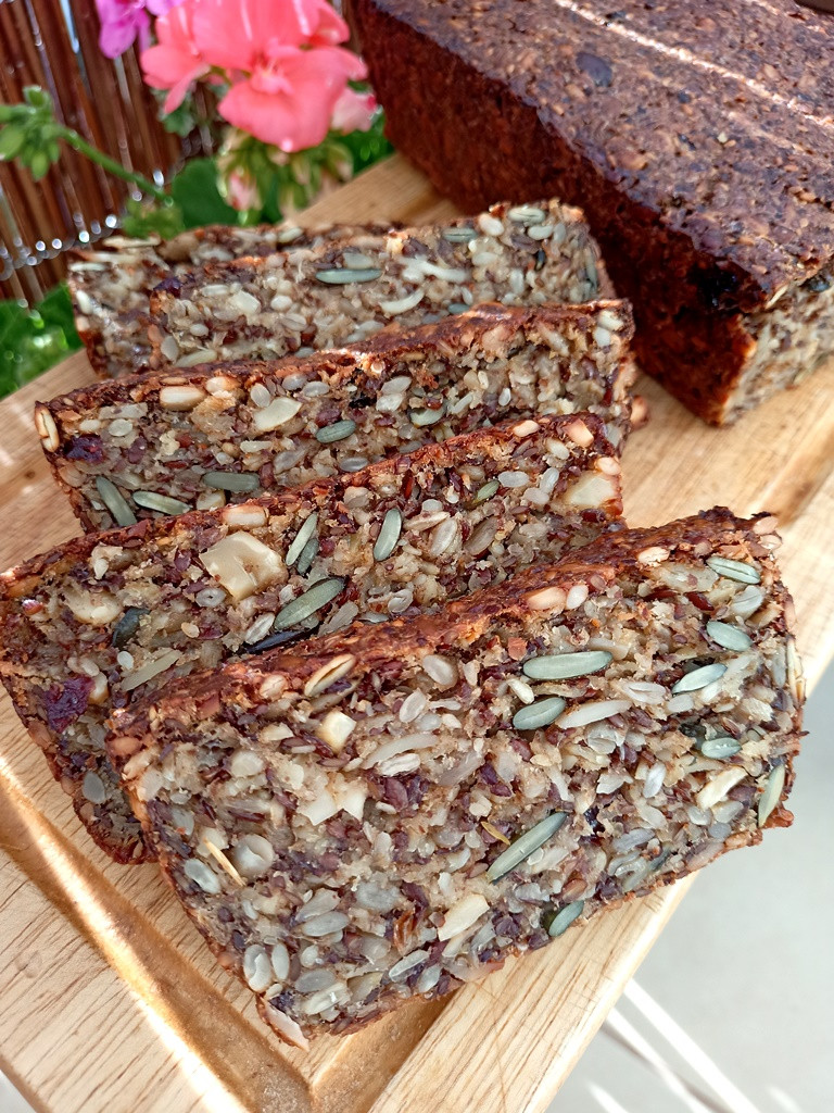 Brød lavet udelukkende med korn, uden mel, æg og hævemidler som bikarbonat eller bagepulver. Det er lækkert og mætter meget længere end hvedebrød. Vi elsker de sprøde kanter. Du kan tilføje dine yndlingskorn, nødder, tørret frugt og bage et nyt brød hver gang. Jeg anbefaler det – det er virkelig det værd!