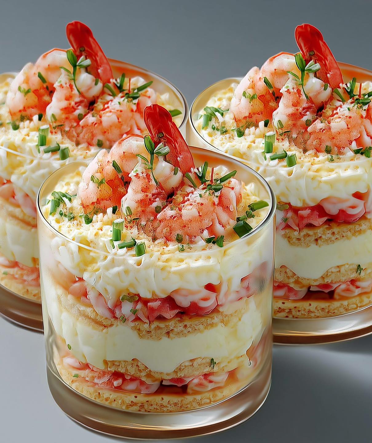 Tiramisu med lyserøde rejer i individuelt bagte glas. En forret uden tilberedning, der vil imponere dine gæster.