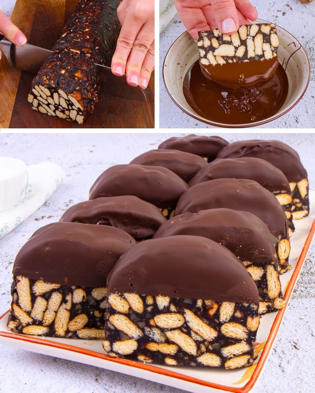 Chokoladesalami er en italiensk dessert uden bagning, der er perfekt til elskere af enkle og lækre desserter. Her er en hurtig og nem opskrift på chokoladesalami uden bagning: