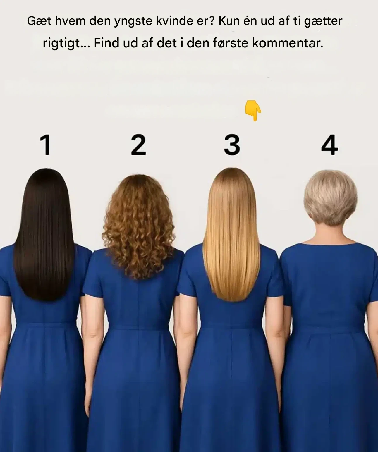 Fire figurer med ryggen til, fire forskellige frisurer … men kun én er den yngste. Denne observationstest, der er gået viralt på sociale medier, afslører, hvor let vores visuelle bias kan bedrage os. Kan du løse mysteriet uden at stole på udseende?
