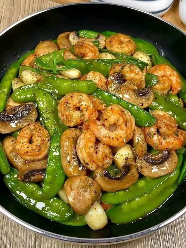 Wok med rejer og sukkerærter er en livlig, hurtig og asiatisk-inspireret ret, der kombinerer rejernes saftighed med sprødheden af ​​friske sukkerærter. Den er perfekt til travle hverdagsaftener eller en let og sund middag, der ikke går på kompromis med smagen.
